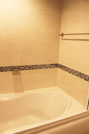 bathroom with bathtub + water heater