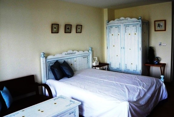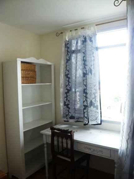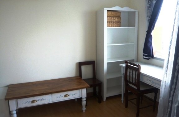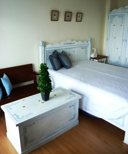 The lovely flat come fully furnished in a shabby chic style with a white double bed, cottage style wardrobe,